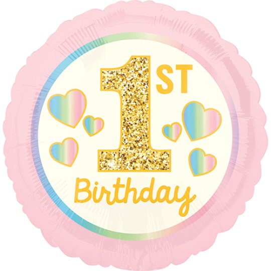/ 18 INCH 1ST BIRTHDAY GIRL PINK & GOLD FOIL BALLOON (1)