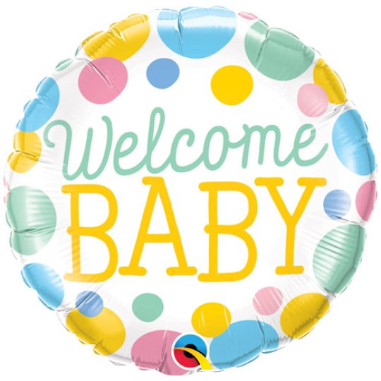 WELCOME BABY DOTS FOIL BALLOON 18 INCH